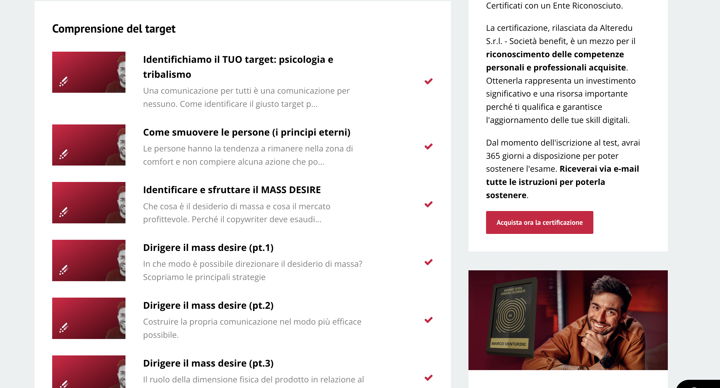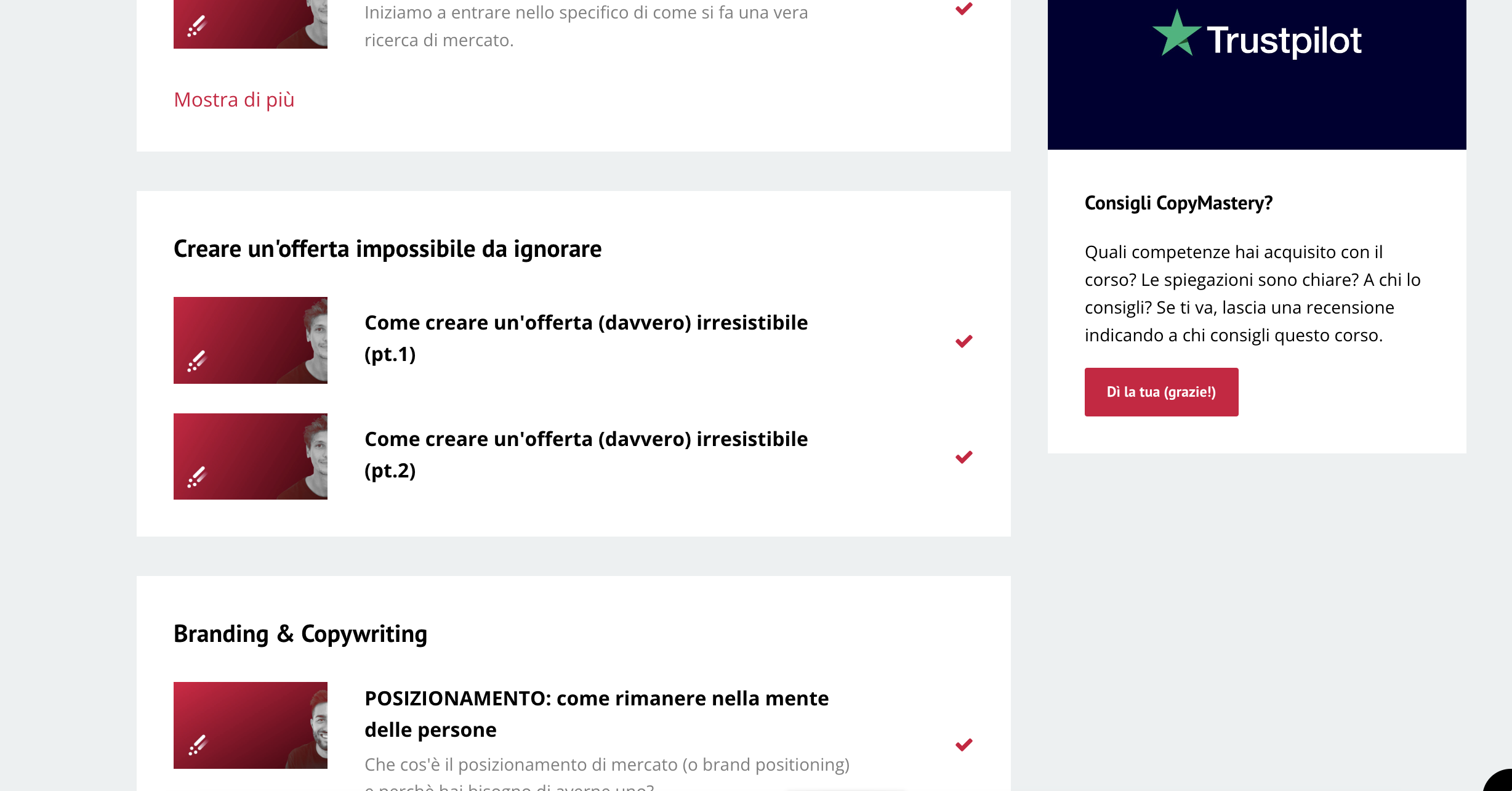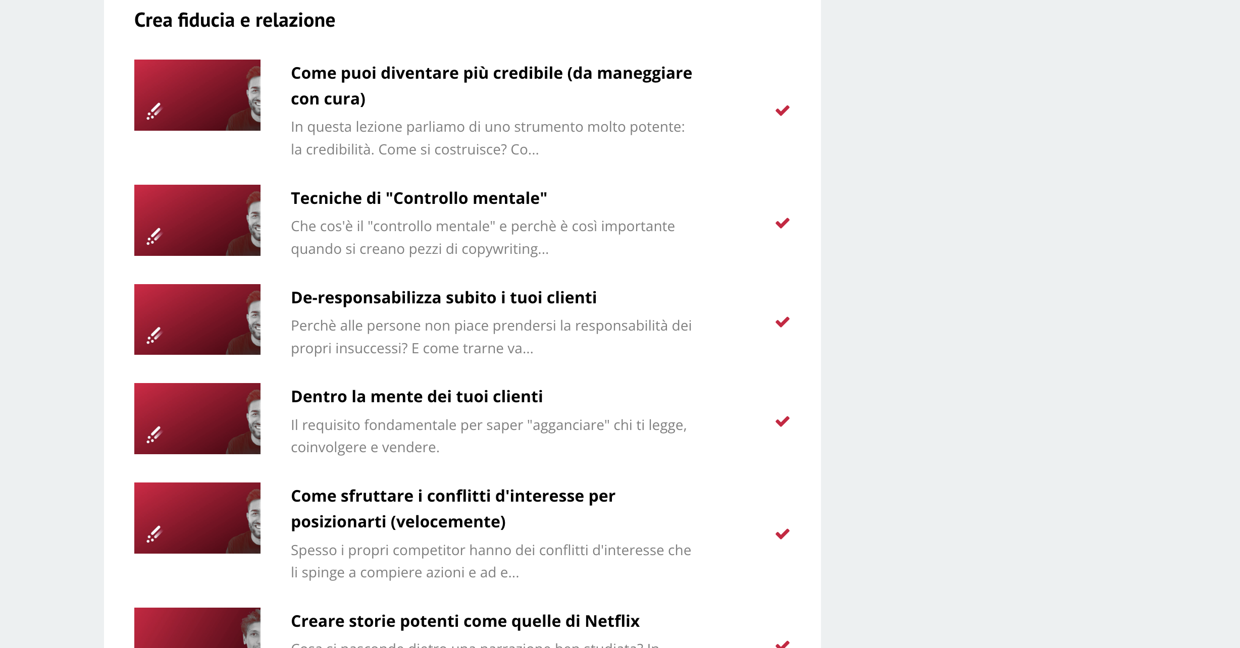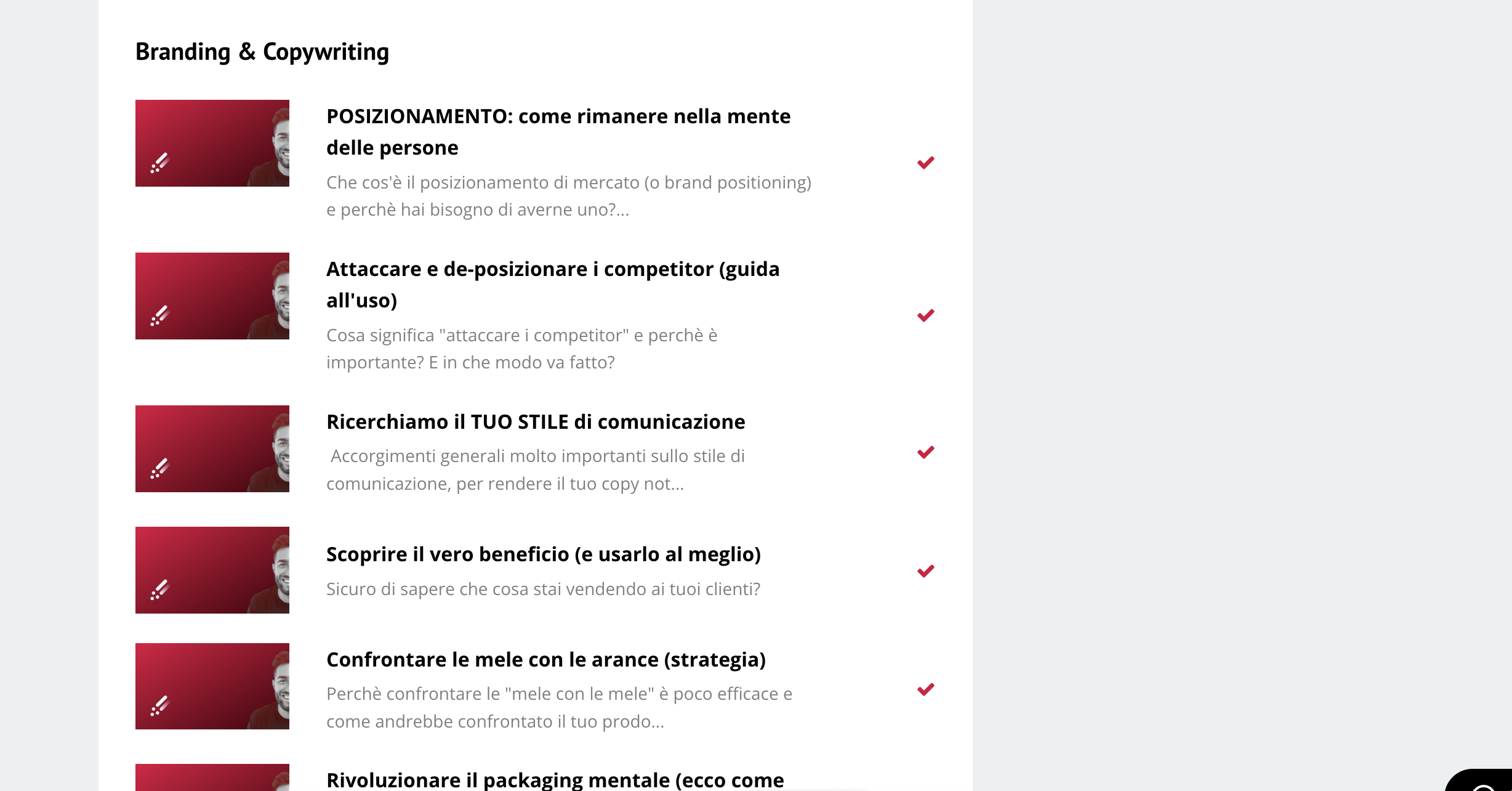 Questo passaggio è così importante, che in Copymastery abbiamo dedicato un’intera sezione sull'argomento, con tantissime lezioni che ti permetteranno di imparare a comprendere, analizzare e comunicare efficacemente con il tuo pubblico target.