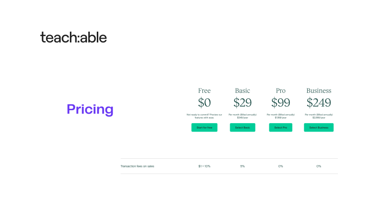 - Teachable è perfetta per un nuovo business e che ti permette una gestione fiscale semplificata;