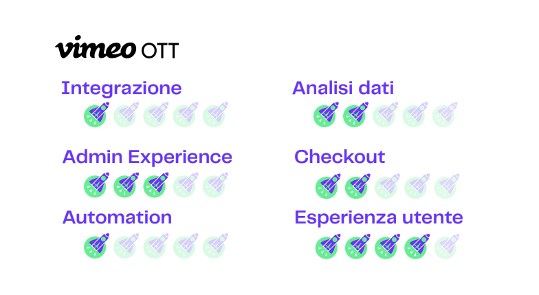 Ecco, i voti che vedrai qui sotto sono bassi per quanto bene ne abbiamo parlato fino ad ora, ma il motivo è questo: Vimeo OTT ha delle potenzialità pazzesche ma, per quanto ci riguarda, alcune funzionalità sono ancora mancanti o troppo complesse rispetto ad altre piattaforme.