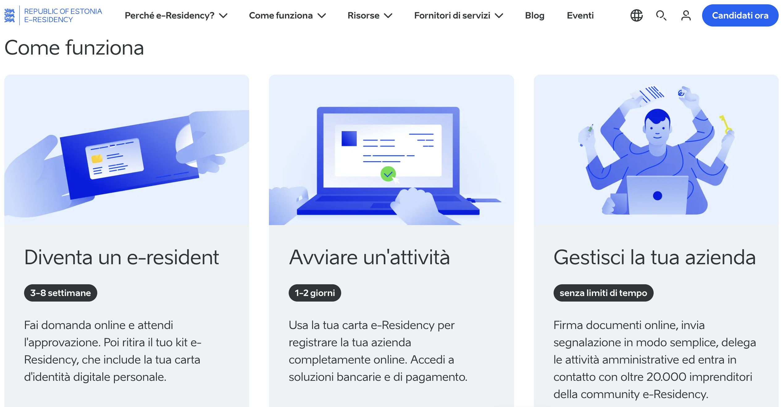 L’e-Residency è, in sostanza, un’identità digitale ufficiale rilasciata dal governo estone a persone che non vivono nel Paese. Con questa identità puoi autenticarti online e soprattutto firmare documenti con firma elettronica legalmente valida e avviare e gestire un’azienda in Estonia completamente da remoto.
