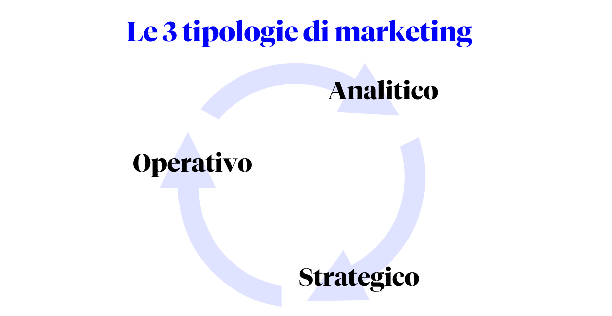 E, proprio per semplificare questo concetto, sono state identificate 3 tipologie di marketing, che si differenziano proprio per competenze necessarie e azioni da intraprendere: