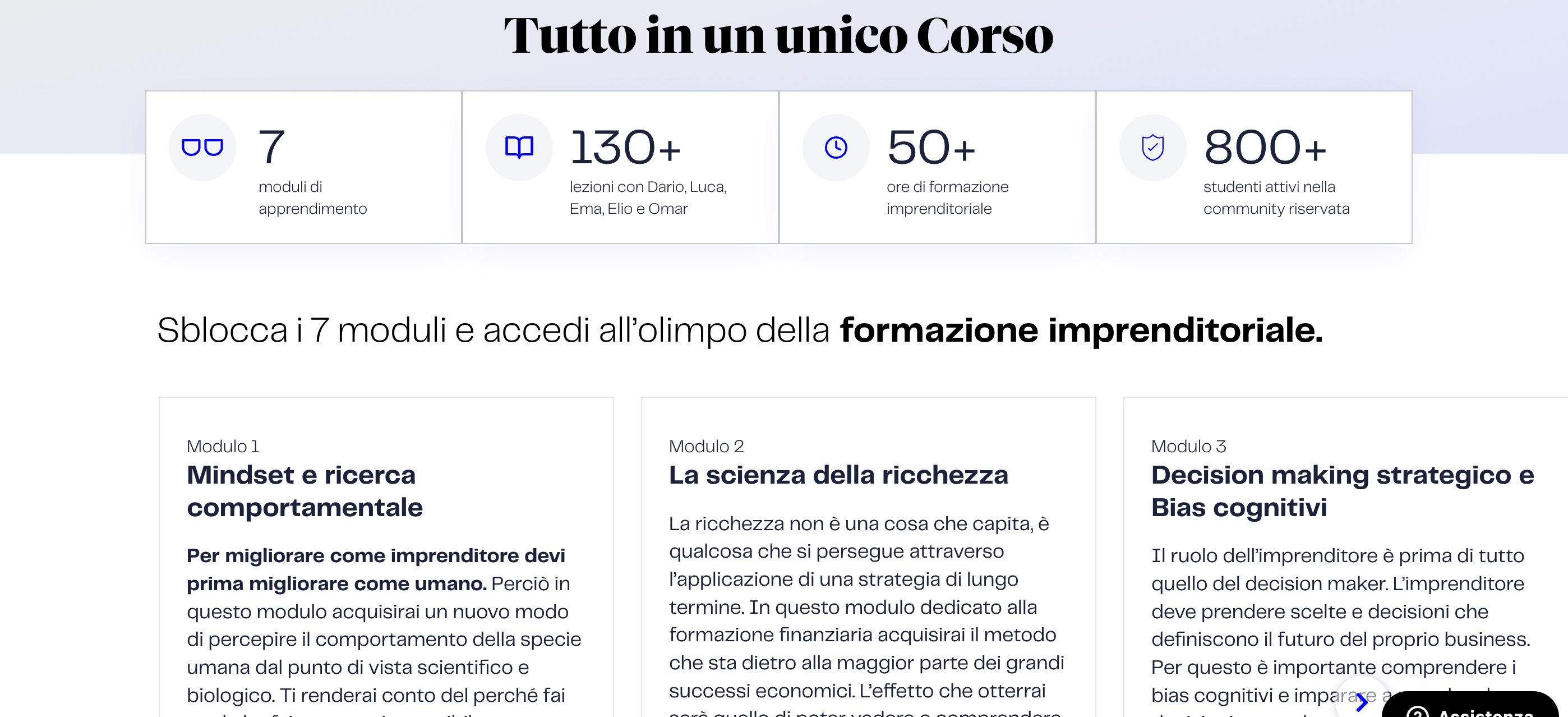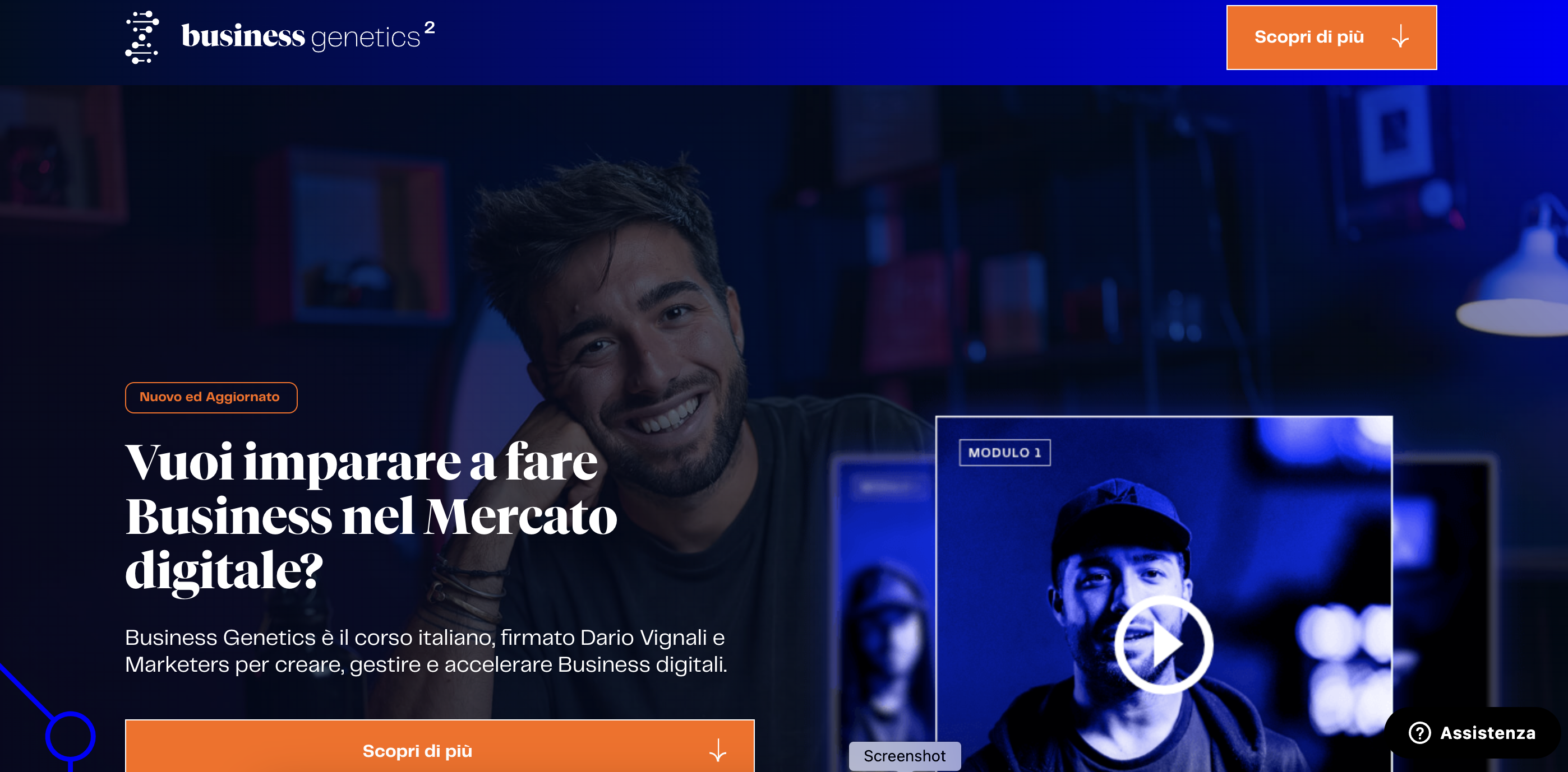 Ad esempio, per il nostro corso Business Genetics, che ti insegna a creare, gestire e accelerare business digitali, abbiamo creato una landing page più lunga rispetto ad altre; proprio perché, avendo un prezzo più alto, le persone hanno bisogno di più informazioni per prendere la decisione finale dell’acquisto.