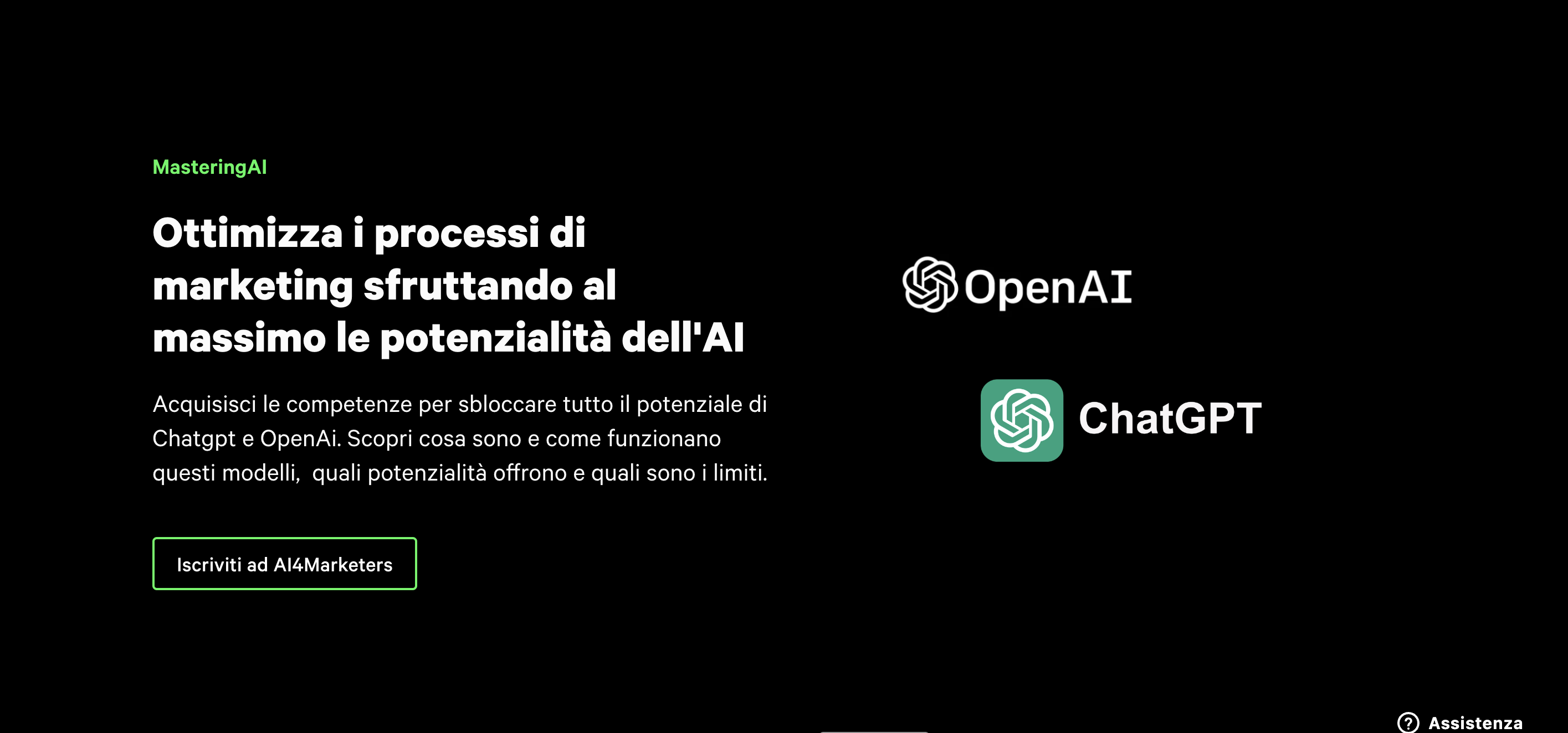 Ad esempio, per AI4Marketers, il nostro corso che ti insegna come utilizzare l’intelligenza artificiale nel lavoro, abbiamo volontariamente deciso di focalizzarci sulle persone che vogliono imparare ad ottimizzare i processi di marketing digitale con OpenAI, e non a un pubblico generico.