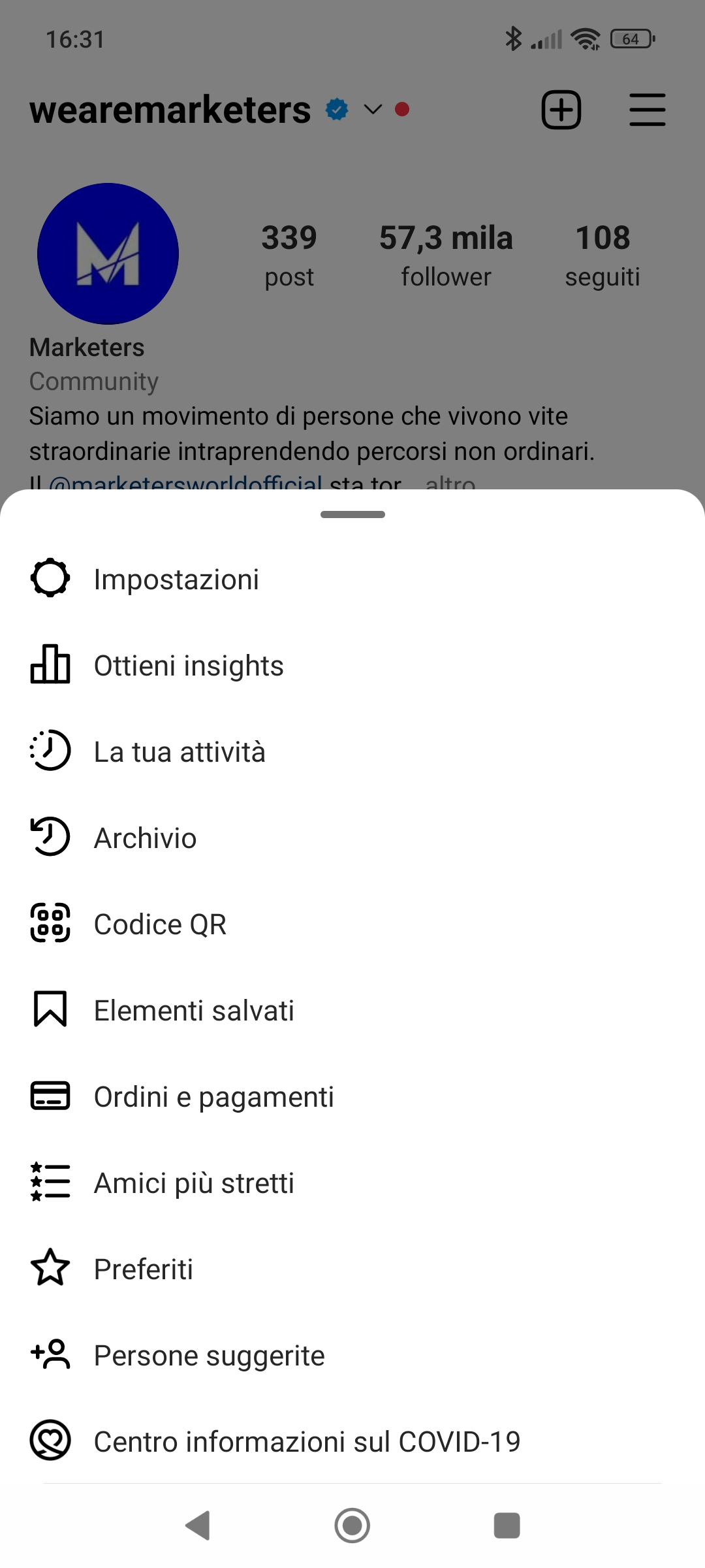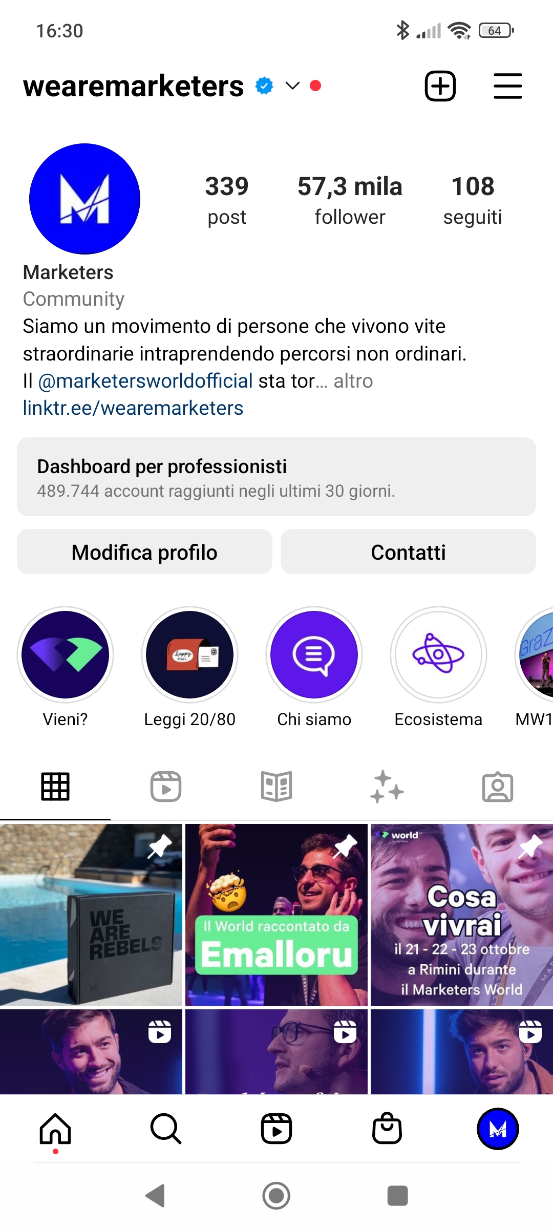 Ora vedremo passo passo come fare tutto ciò nella pratica, con screenshot presi direttamente dal nostro account Instagram Marketers.