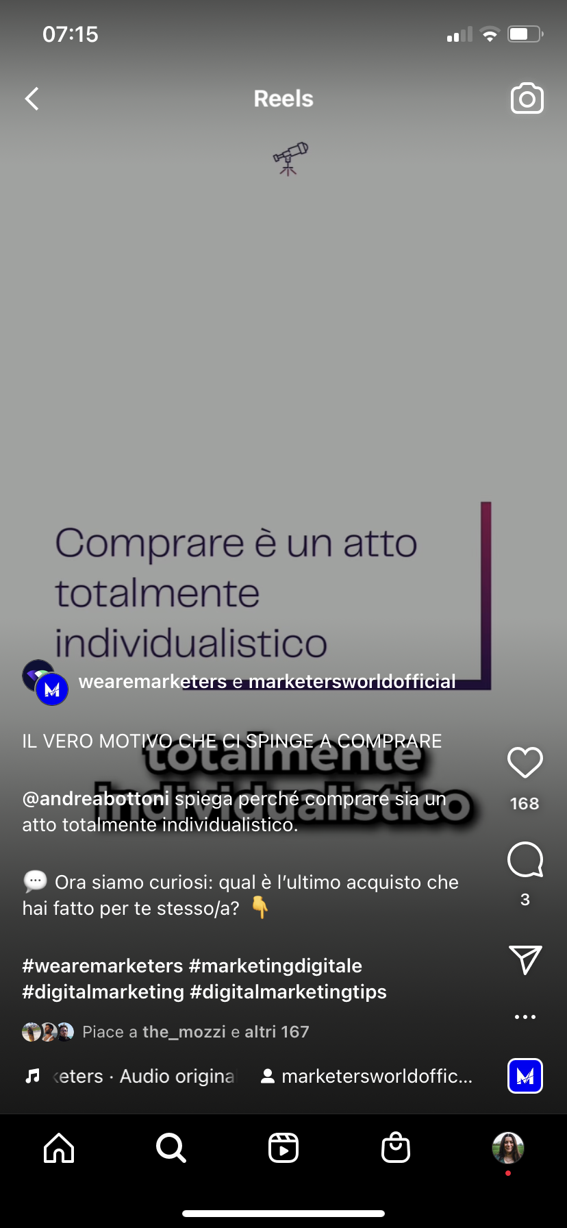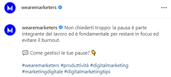 - Iscriverti a Marketers Pro, la nostra community esclusiva dove potrai trovare contenuti inediti, corsi di formazione e masterclass, ma potrai anche chiarirti qualunque dubbio sul mondo Instagram e i suoi hashtag ponendo domande direttamente a tutti i docenti Marketers;