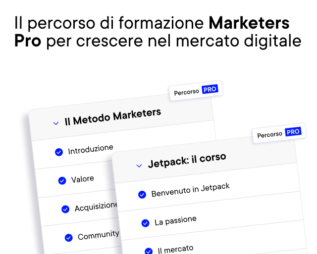Se vuoi approfondire questo tema, ti consigliamo di accedere a Marketers Pro, dove troverai il corso al Metodo Marketers, che include una sezione dedicata alla creazione di contenuti di valore.