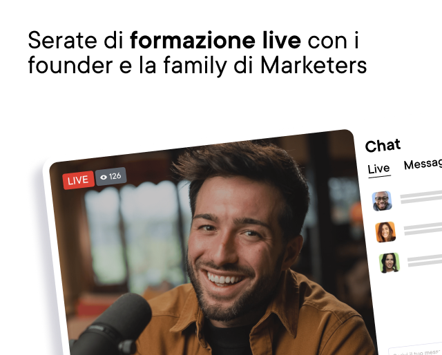 Siamo Marketers, una community di esperti nel settore dell’imprenditoria digitale, pronti ad aiutarti a padroneggiare la lead generation e ad accelerare la crescita del tuo business online.