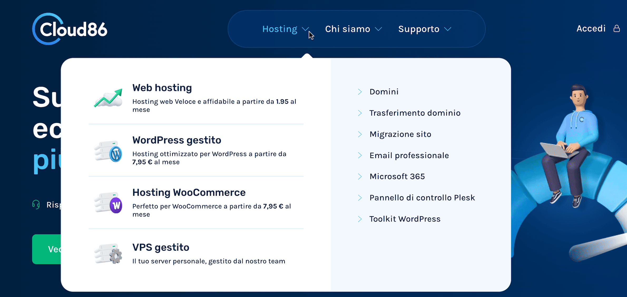 Come abbiamo detto poco fa, Cloud86 è pensato per chi cerca un hosting affidabile, veloce e senza complicazioni.
