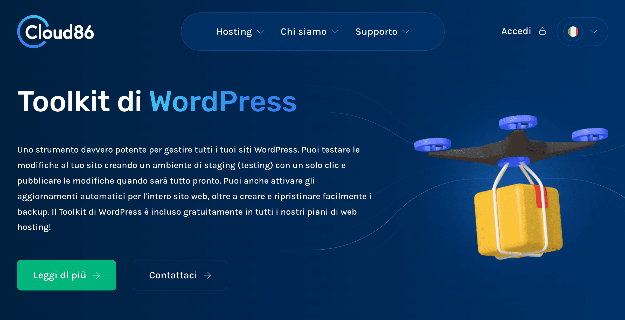 Il Toolkit WordPress di Cloud86 è pensato per semplificare la gestione quotidiana dei siti, riducendo al minimo la complessità tecnica.