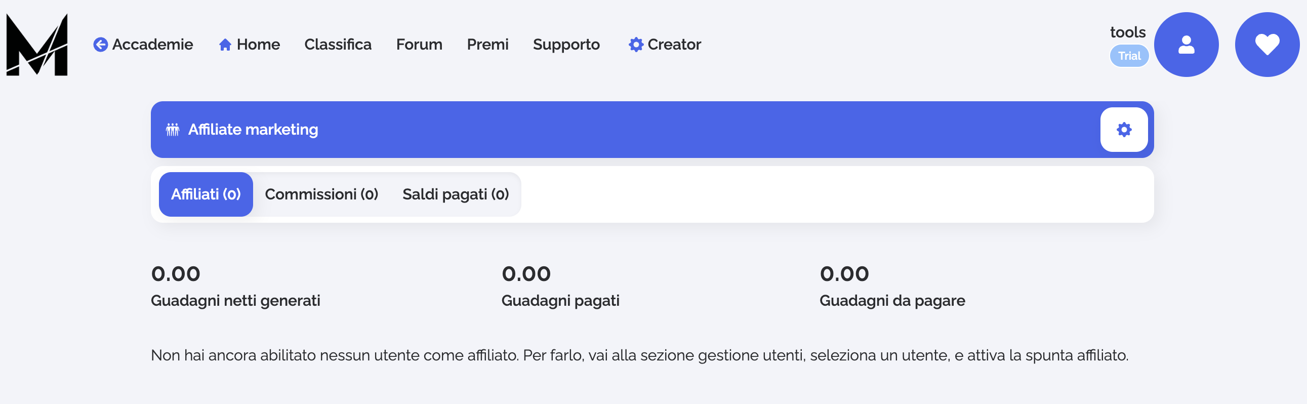 Gestire gli affiliati su Esmerise è semplice e intuitivo: puoi monitorare le loro performance e gestire i pagamenti direttamente dalla piattaforma.