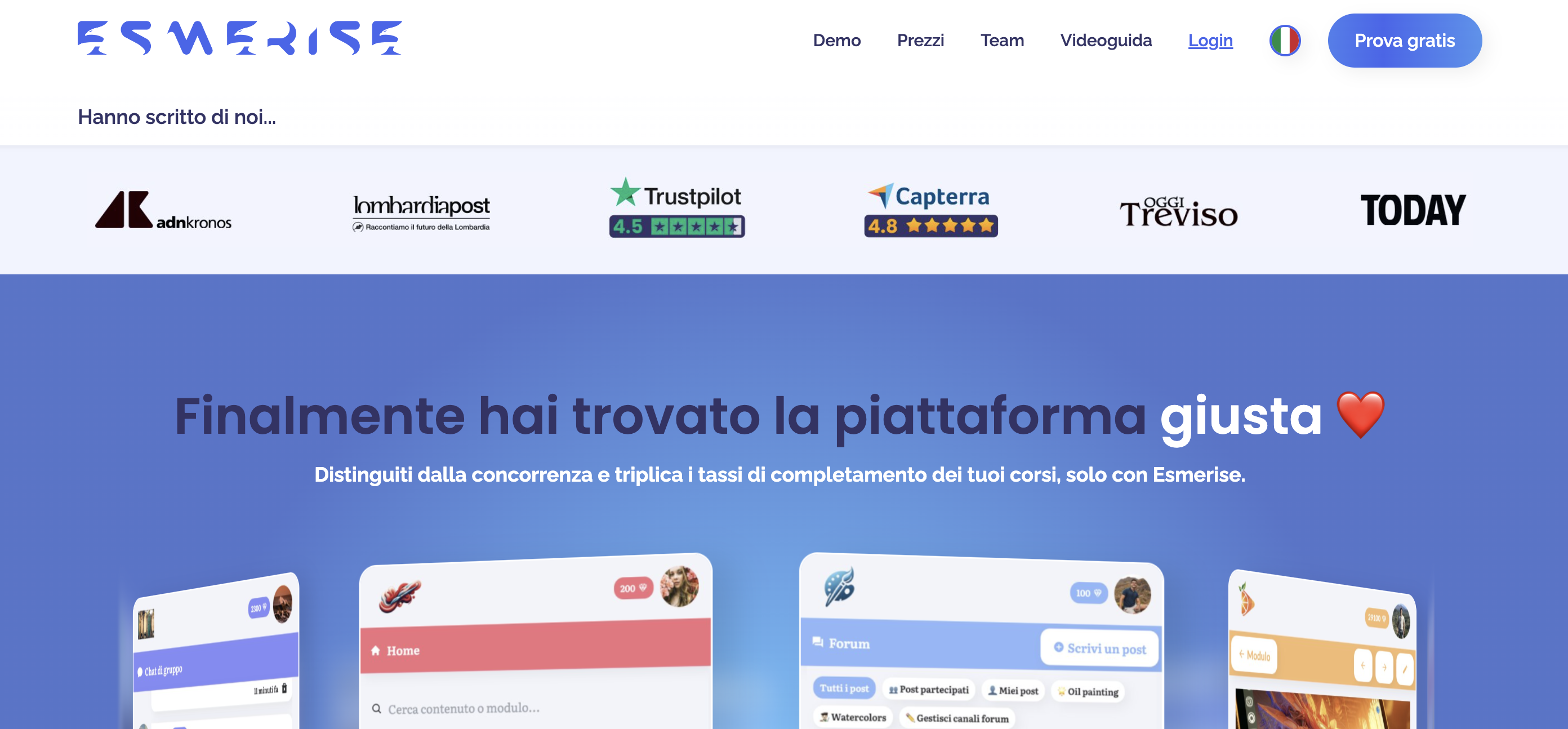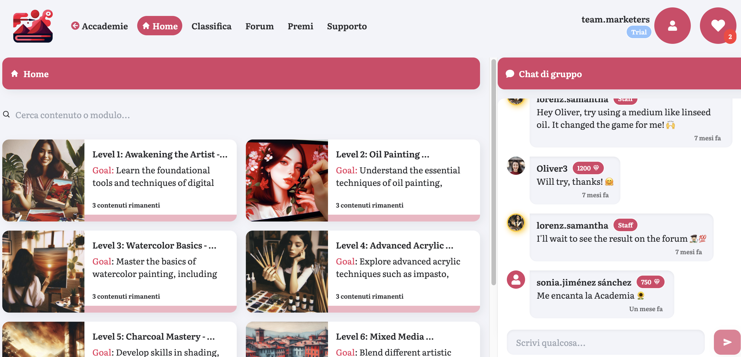 Esmerise non si limita a fornire uno spazio per i corsi, ma supporta anche lo sviluppo di una community attiva.