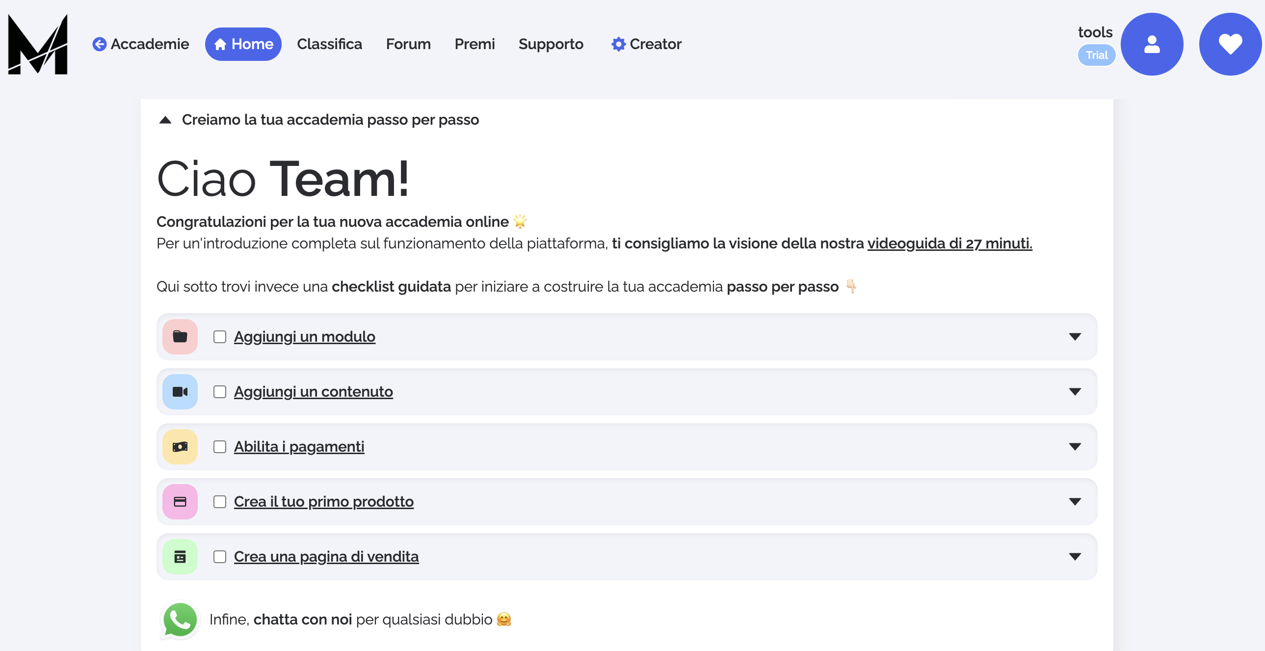 Ma soprattutto, ti consigliamo davvero di guardare la loro video guida, che ti spiega passo passo come creare ed ottimizzare la tua accademia: