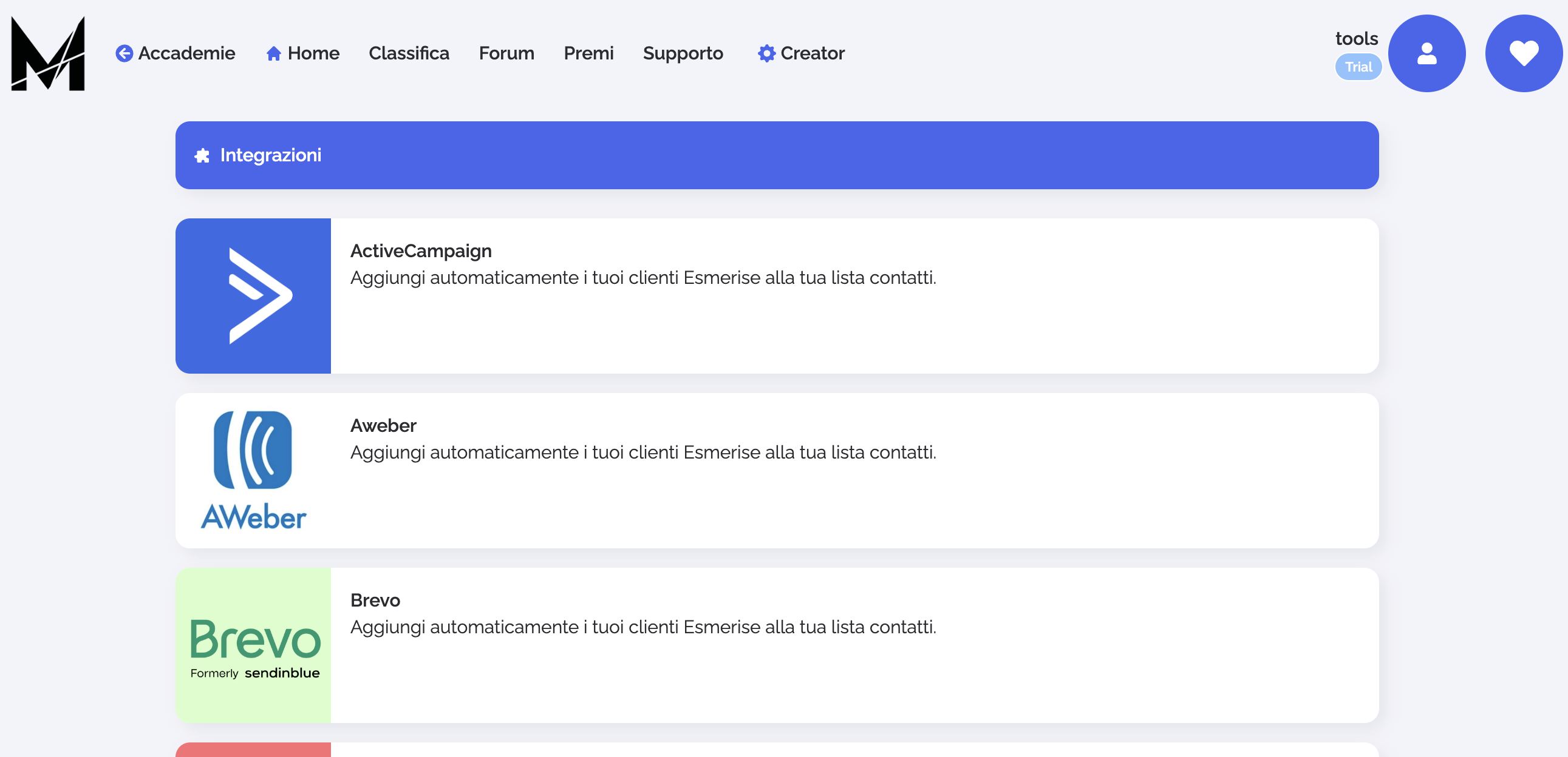 Esmerise offre diverse estensioni e integrazioni per espandere ulteriormente le funzionalità della tua accademia e ottimizzare la gestione dei tuoi corsi e contenuti.