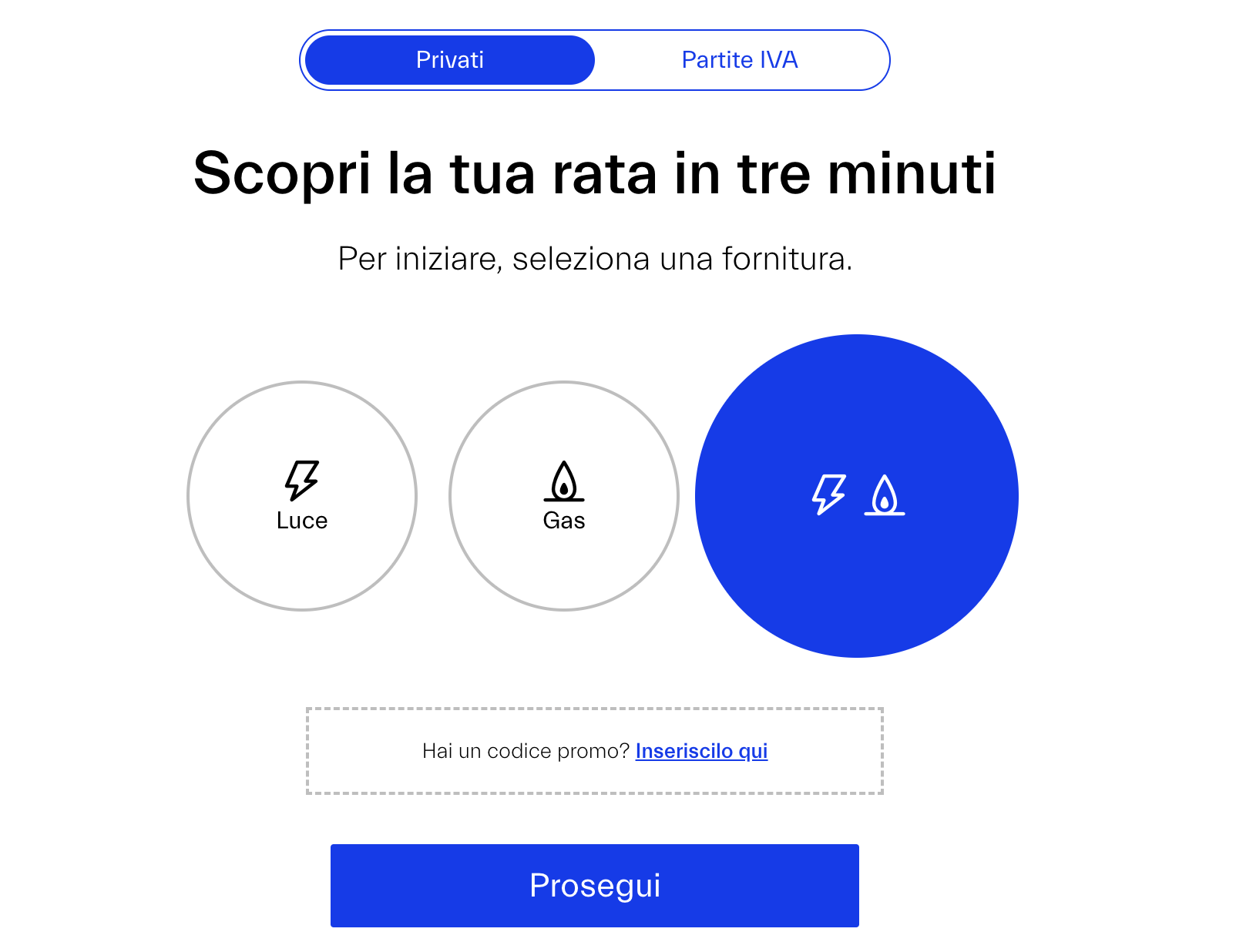 Una volta scelto il tipo di fornitura di cui hai bisogno (luce, gas o luce e gas), dovrai seguire questi passaggi:
