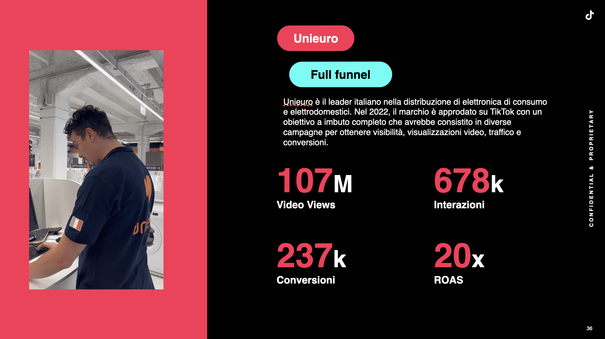 Risultati: 107 M di video views, 678 k di interazioni, 237 K di conversioni, ROAS x20.