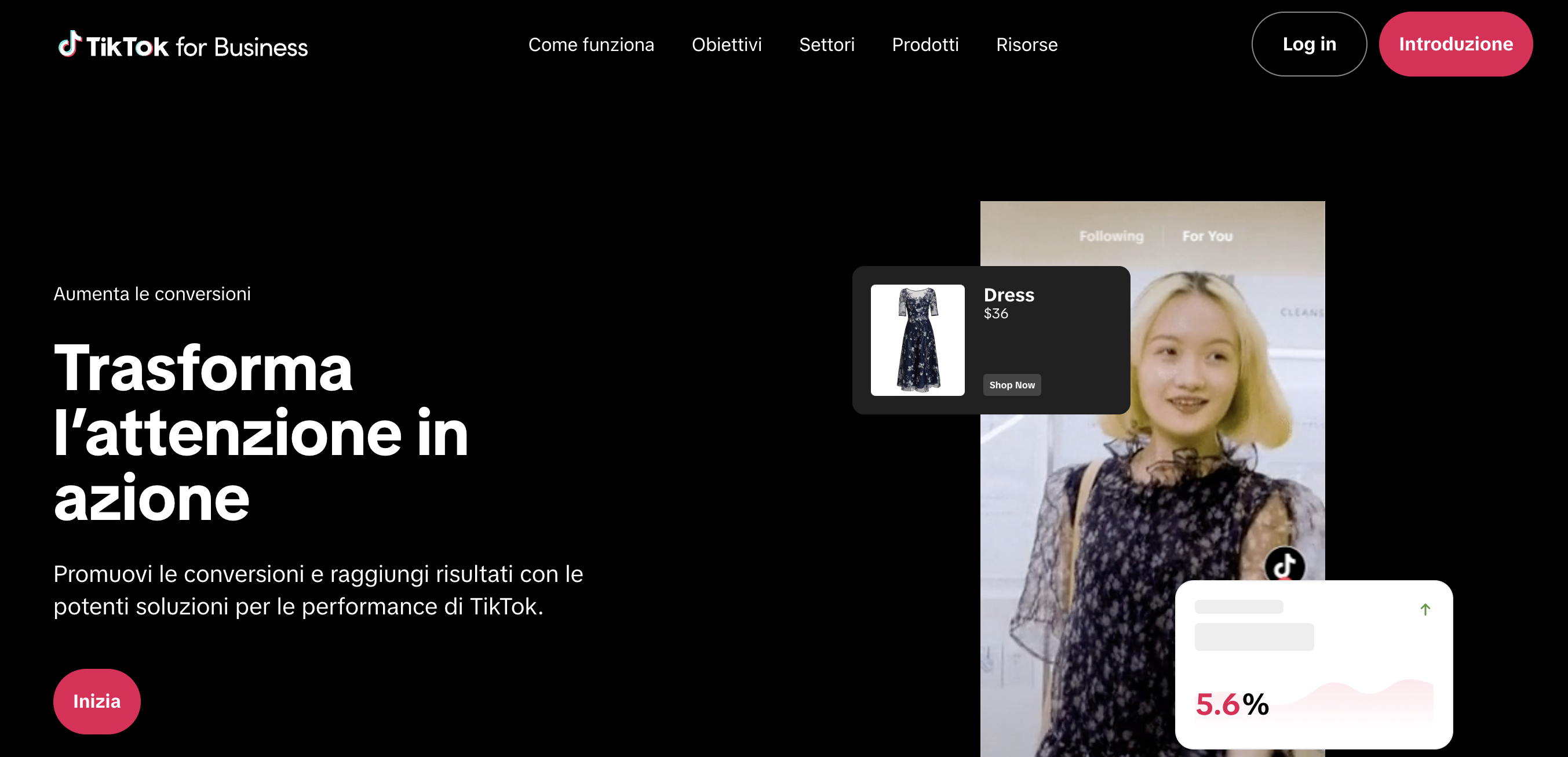 5. Attirare nuovi clienti: con il 58% degli utenti che scopre nuovi brand sulla piattaforma, TikTok offre soluzioni pubblicitarie immersive che generano conversioni a un costo per azione inferiore. Questo rende la piattaforma un luogo ideale per acquisire nuovi clienti e costruire relazioni durature.
