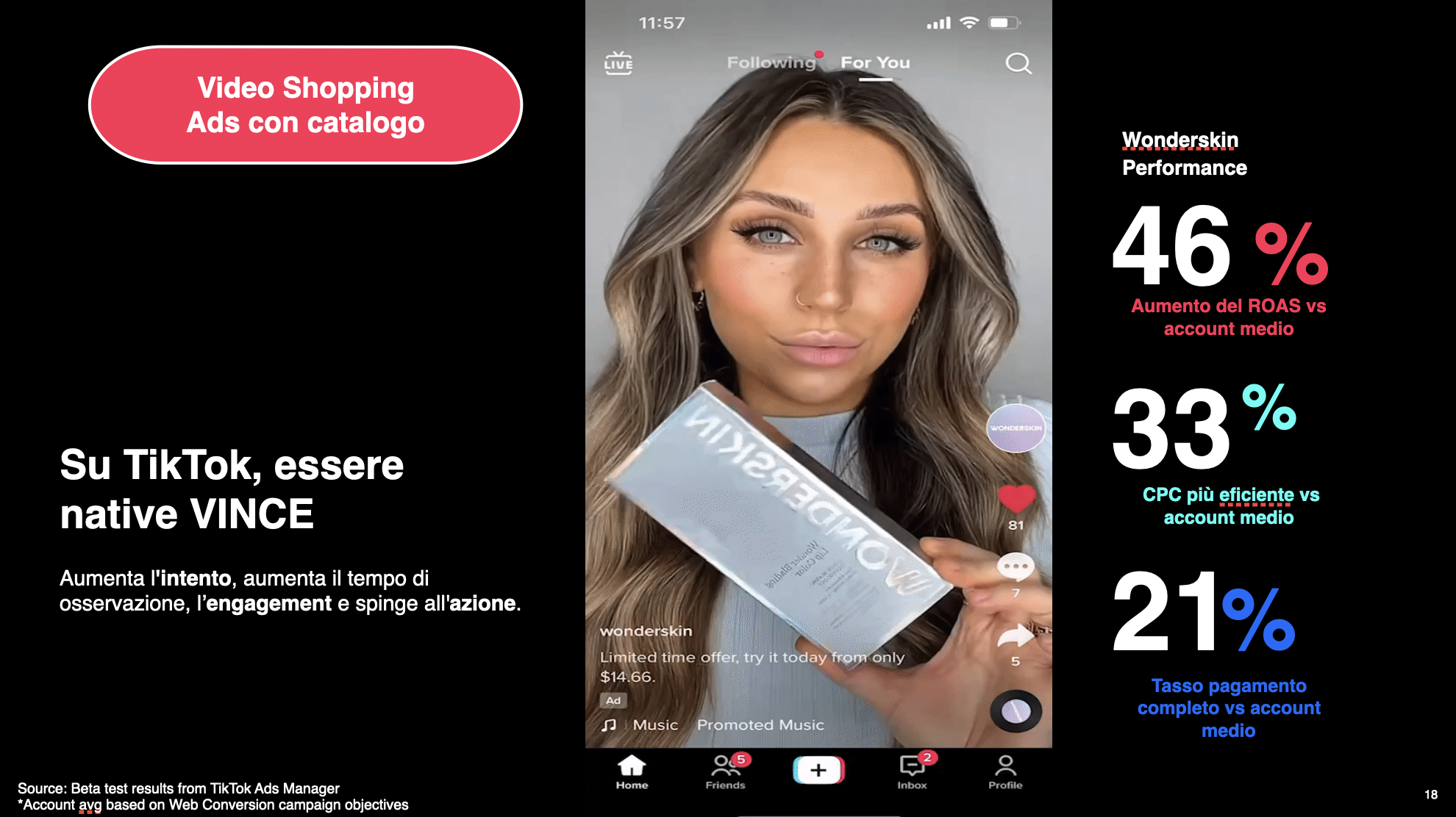 - Risultati: 26 ROAS (video shopping ads), 8% di conversion rate.